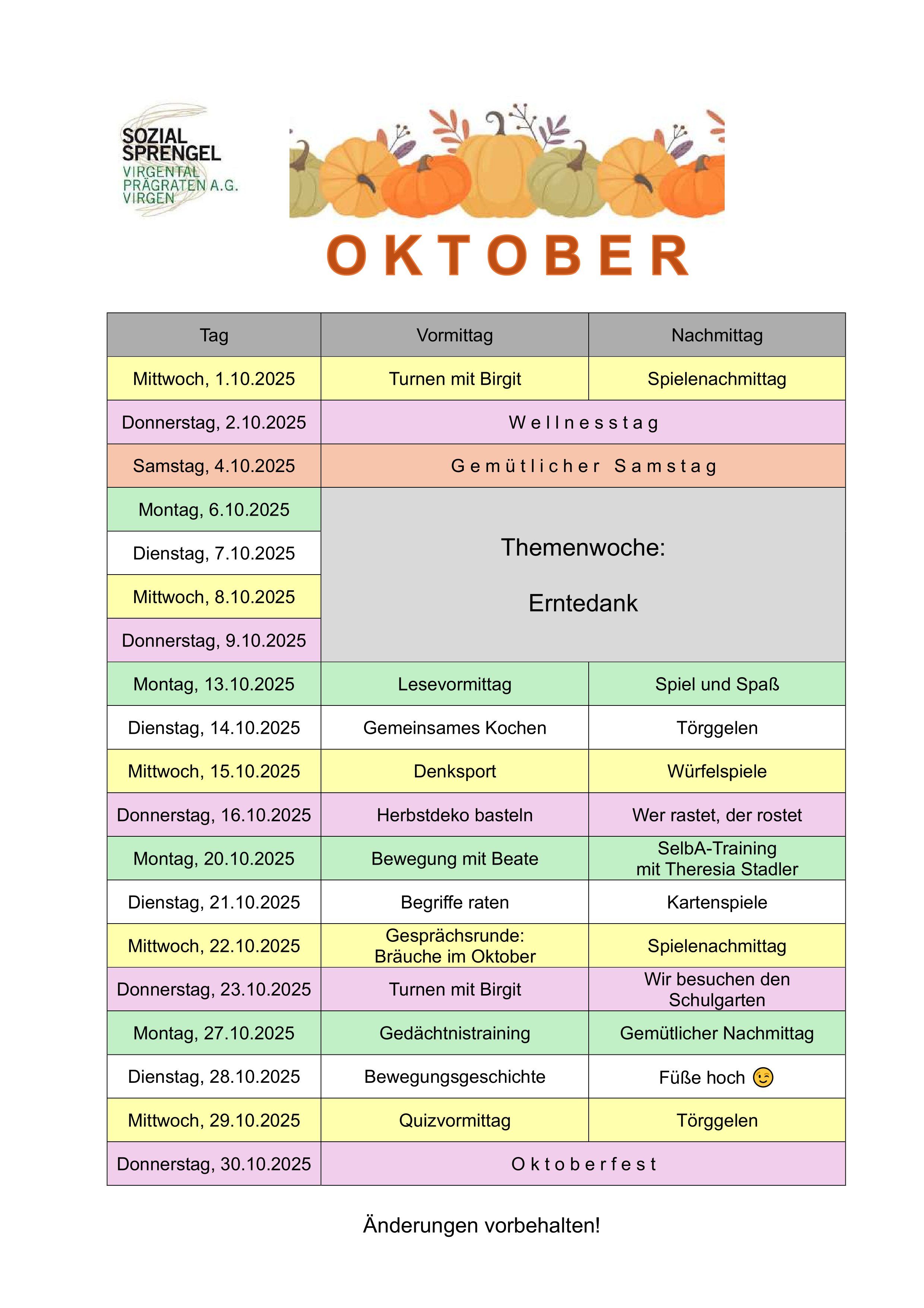 September 2025: Unsere Aktivitäten in der Tagespflege sind vielseitig. Musik, Spielen, Kochen und Backen, (Denk)Sport oder einfach ein gemütlicher Nachmittag.